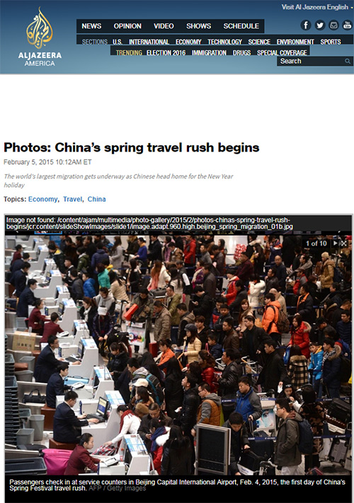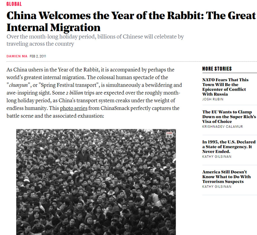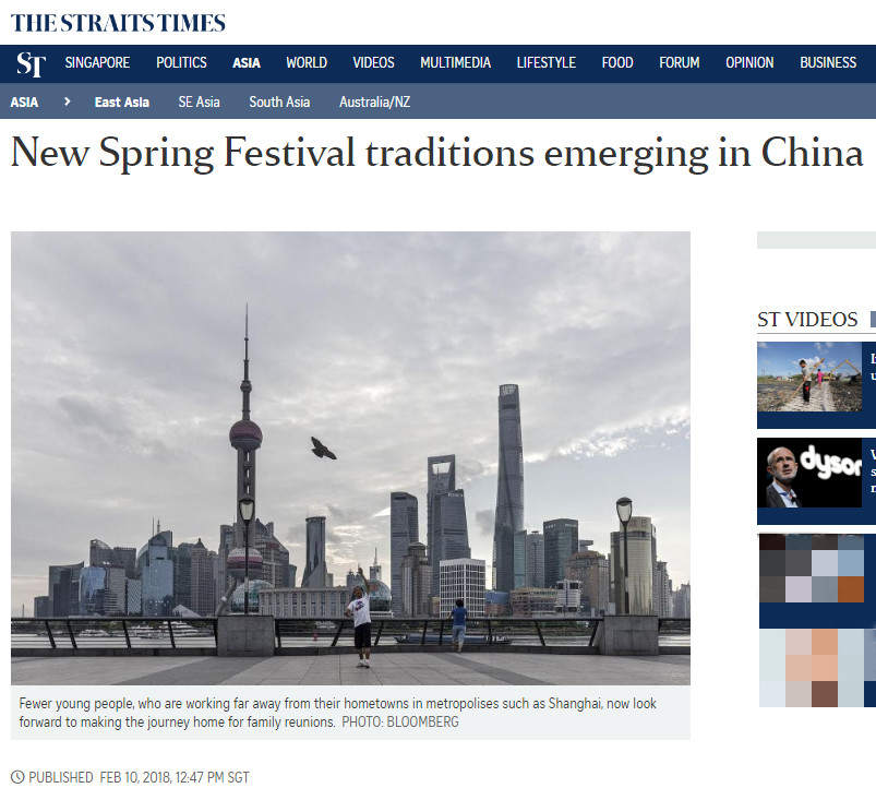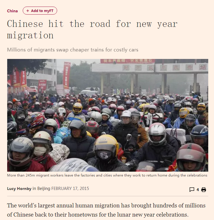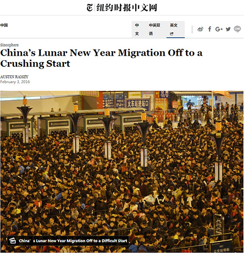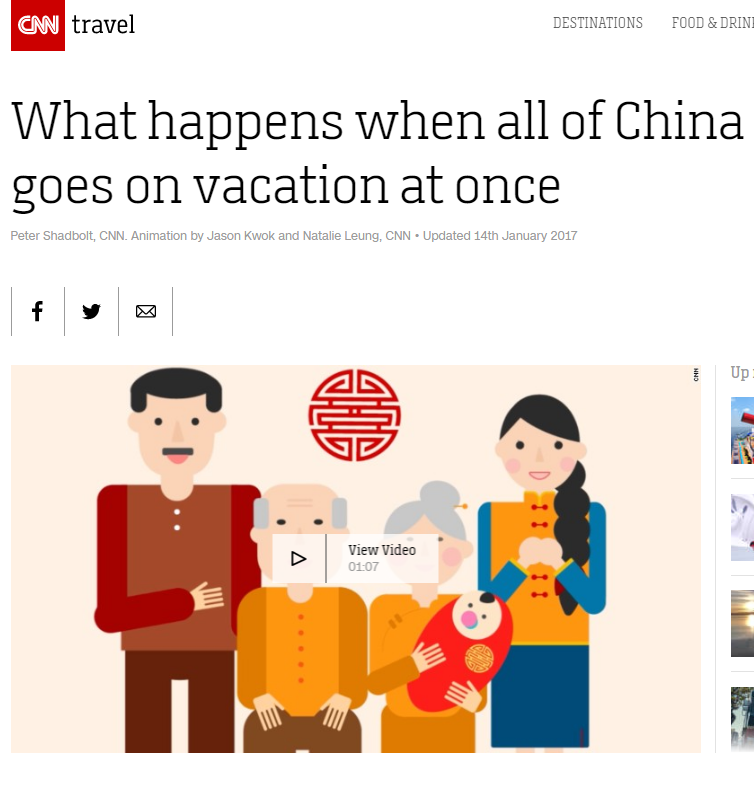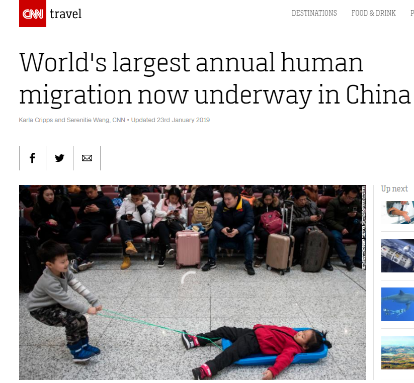 CNN2017年1月13日报道,“家人老是排正在第一位”。文章称,春节是中国阴历中最主要的节日。